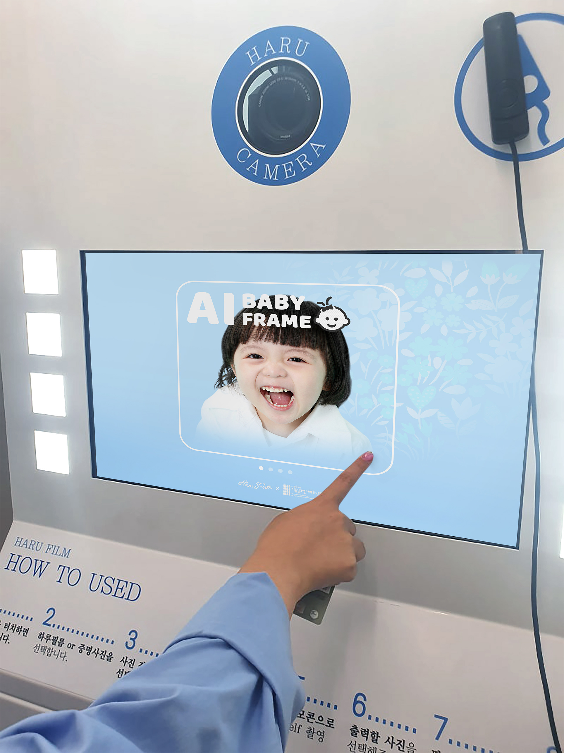 그래서 우리는 하루필름과 같은 포토 부스에 AI BABY FRAME을 도입할 것입니다. 이들이 함께 포토 부스에서 사진을 찍으면 이들의 외모를 닮은 가상의 아이의 이미지를 중앙에 생성해줌으로써, 데이트와 동시에 자연스럽게 아이에 대한 잠재적인 미래를 논의하는 방안을 제시합니다.